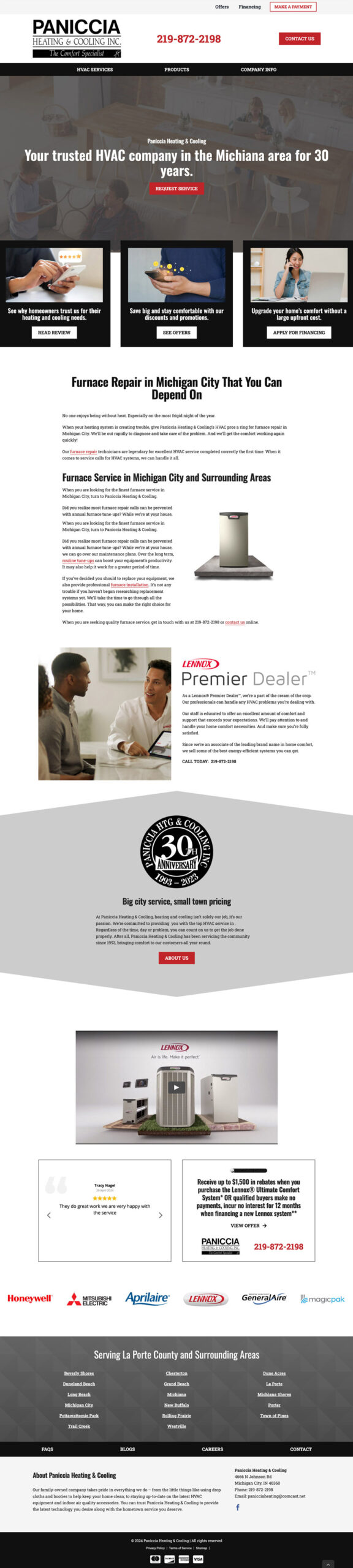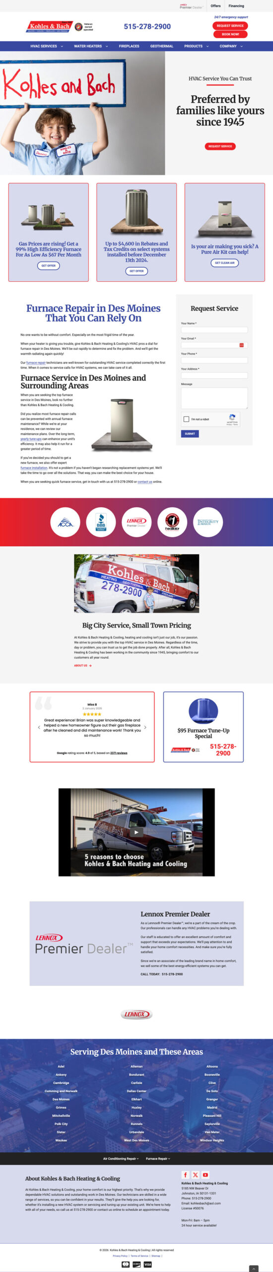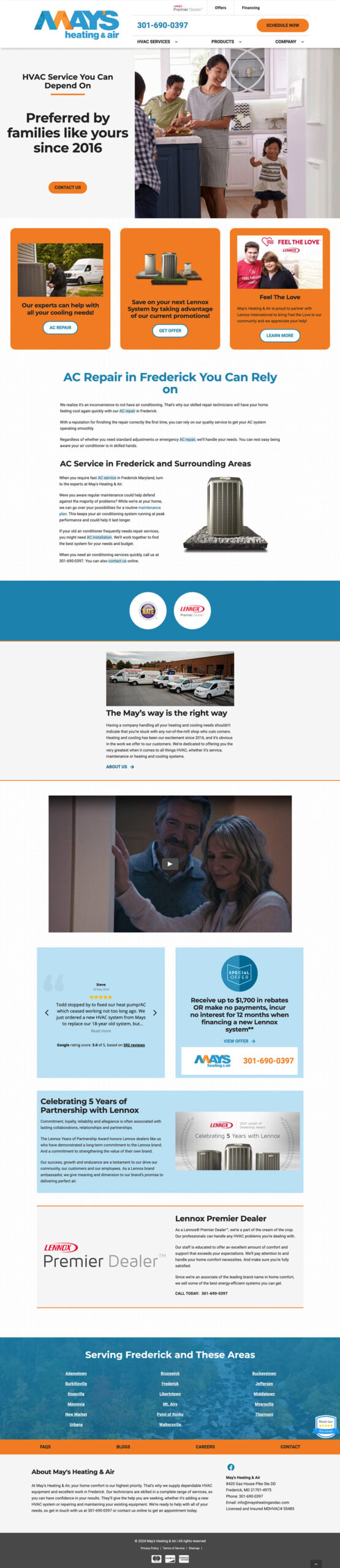 This project is a long-running, SEO-driven multi-site website program supporting HVAC dealers nationwide. Each site is built on a shared WordPress foundation and assembled using a modular set of components then customized with dealer-specific branding, imagery and content.